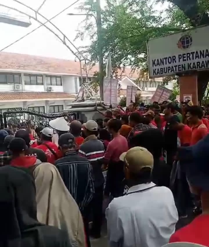 Karawang, -Kedatangan Serikat Pekerja Tani Karawang( SEPETAK) ke kantor Badan Pertanahan Negara (BPN), dengan ribuan petani lain nya, pada hari Kamis (27/7/23)